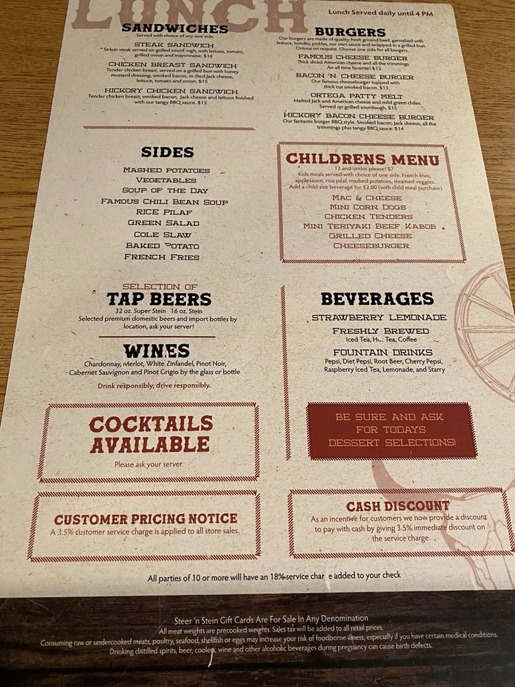 Patrons rave about the quality of food and attentive service, praising the consistently hot, fresh dishes and the old western vibe that enhances dining experiences. Signature offerings like the Super Stockyard steak paired with a refreshing Stein of beer create a memorable meal. Enjoy the outdoor seating and kid-friendly atmosphere, making it ideal for groups and families alike.